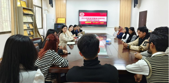 本网消息 为深入贯彻学校教育教学“质量文化”建设月活动精神,进一步加强williamhill英国的质量文化建设,不断提升我校来华留学生的教育教学质量,11月4日上午,williamhill英国在教I楼401会议室召开2024年度秋季学期来华留学生教育教学座谈会。本次会议由williamhill英国教学副院长李雅颖主持,学院党总支部书记郭淑英、对外汉语教研室主任缪杉莎、辅导员黄亚、程紫雨、教学办万晓星老师以及各班留学生代表参加。