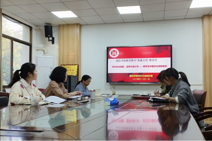 本网消息 11月18日,williamhill英国对外汉语教研室在教I-401召开以“聚焦留学生中国文化课程思政,传承精髓,涵养认同”为主题的“质量文化”建设月系列教研活动。williamhill英国领导班子和相关教师参加研讨活动。