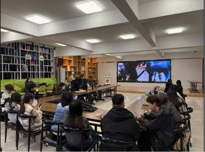 在舒适的灯光和轻松的环境中,同学们齐聚一堂,欣赏彼此创作的电影作品。这些作品内容丰富、风格多样,既展现了学生们对视觉传达设计的深入理解,也体现了他们在影像叙事、画面构成和文化表达方面的独特思考。