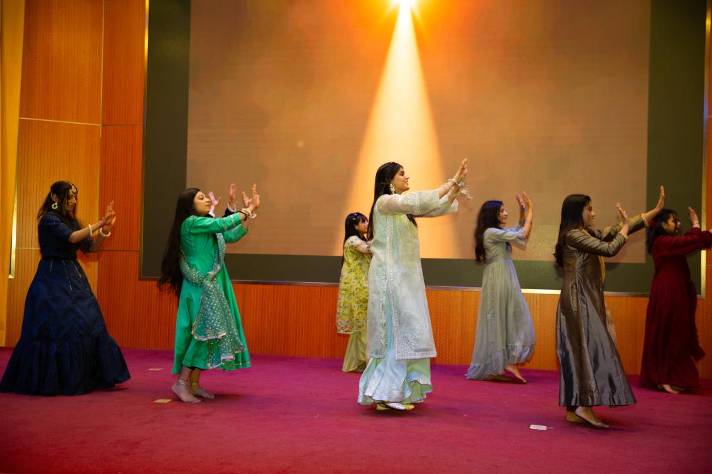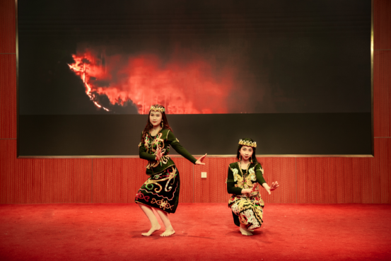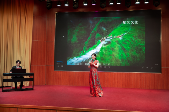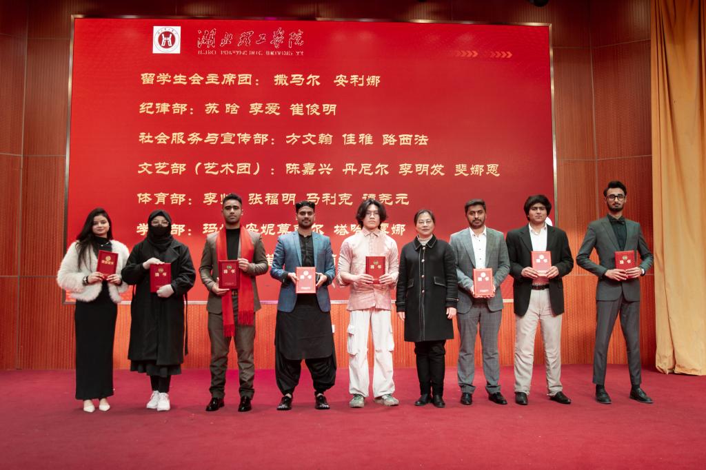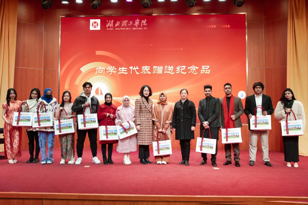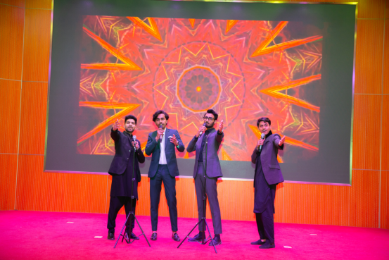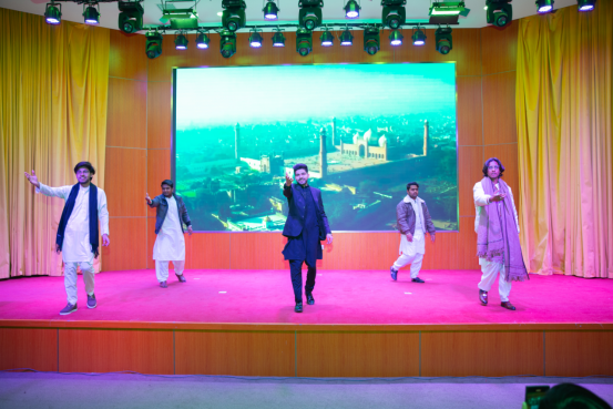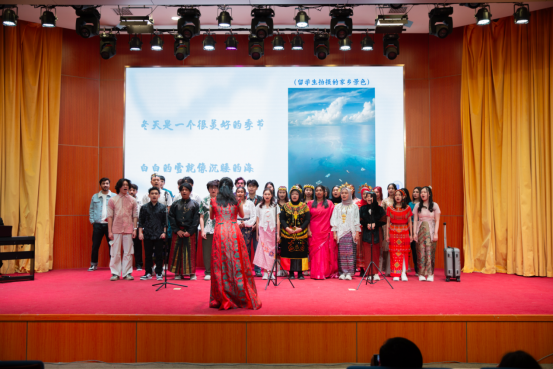 迎新晚会由2024级汉语进修生雨希、陈嘉兴主持。辅导员程紫雨老师的一首《龙船调》拉开了晚会的序幕,随后来自巴基斯坦、印度尼西亚的同学们带来了舞蹈《punjabi dance》《FLYING HIGH》和歌曲《A Million Dreams》《eaaa》《ONE ONLY》《KUN FAYA KUN》和情景剧《跨越山海情难忘,勿畏前行携手望》。晚会的互动环节也十分精彩,对外汉语教研室主任缪杉莎老师巧妙设计了关于中国年俗文化的抢答题,吸引了留学生积极参与。整场晚会,现场气氛热烈,欢呼声、掌声此起彼伏。晚会在全体演员和观众共同演唱的校歌中圆满落幕。