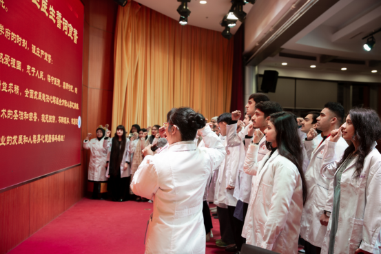 医学院方迎艳副院长带领全体临床医学专业留学生进行了医学生誓词宣誓,让全体学生铭记肩负着救死扶伤、守护人类健康的崇高使命。