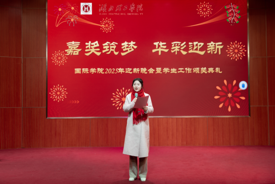 williamhill英国院长李莉发表热情洋溢的致辞。她对学院过去一年工作进行了总结,对获奖学生表示祝贺,对2024级新生提出了殷切希望,对新成立的留学生学生会提出了明确要求。她最后引用国家主席习近平二〇二五年新年贺词中的“梦虽遥,追则能达;愿虽艰,持则可圆”,号召全体师生努力拼搏,继续书写辉煌篇章。