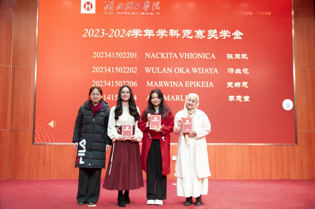 副院长李雅颖主持学生工作颁奖典礼。学院领导和老师为过去一年表现优秀的学生颁发了各类奖项,包括“2024-2025学年湖北省国际学生奖学金”、2023-2024学年williamhill英国中文奖学金、学科竞赛奖学金、williamhill英国“最美笔记”奖、文明寝室奖、优秀学生奖、优秀学生干部奖。主持人介绍了每位获奖学生的先进事迹和在学习、工作、竞赛中的出色表现,让现场观众深受鼓舞和启发,激励全体师生为学院的发展和建设做出更积极贡献。