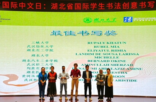 本次大赛由湖北大学、湖北省教育国际交流协会国际中文教育分会联合主办,大赛吸引了来自武汉大学、湖北大学、湖北工业大学等全省二十余所高校的国际学生踊跃参赛。经专家严格评审,现场揭晓了"最佳书写奖""最佳创意奖""最佳表现奖"和“优秀奖”等多项荣誉。我校留学生ELIYATUL RIDHA凭借作品《清风徐来》斩获"最佳书写奖",其笔墨流转间尽显汉字韵律之美;AGRY CHRISTIAN创作的《仁义礼智信》通过古拙笔触传递儒家文化精髓,获得"优秀奖"。
