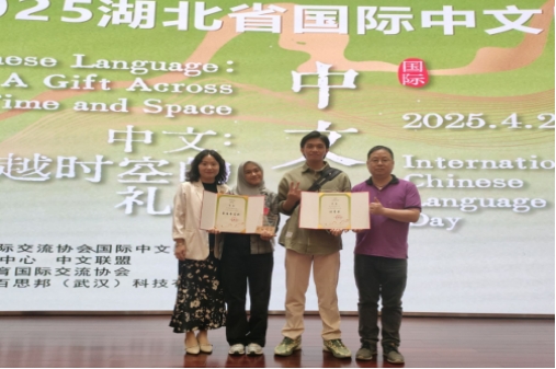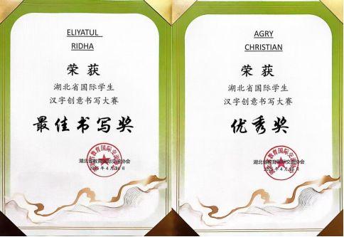 4月26日,我校临床医学专业2019级留学生ELIYATULRIDHA(林荣莲)和2021级留学生AGRY CHRISTIAN(林勇富)在“2025湖北省国际中文日:湖北省国际学生汉字创意书写大赛”中分别荣获“最佳书写奖”和“优秀奖”。