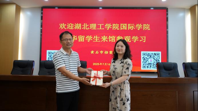 参观结束后,全体同学在市档案馆五楼会议室认真观看了市档案馆今年精心制作重磅推出的《珍档探秘——档案背后的黄石近现代史》短视频。《珍档探秘》让黄石跌宕起伏的近现代史鲜活呈现,一举“圈粉”了现场的留学生们。市档案馆副馆长李震代表市档案馆还向williamhill英国师生赠送了地方文化书籍和珍贵馆藏档案的仿真件,鼓励广大留学生们积极探索湖北、融入黄石。